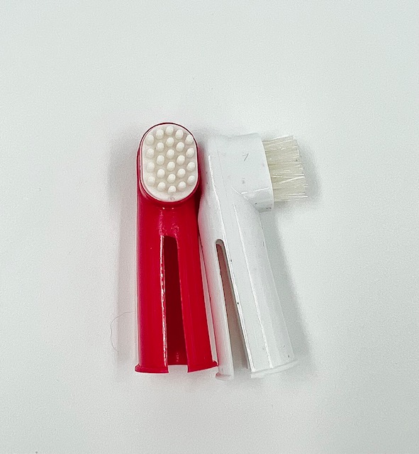 Gills fingerborste för hundar och katter, paketet innehåller två tandborstar: den första är lämplig för känsliga hundar att vänja dem vid att använda. Den andra är för tandköttsmassage, främjar blodcirkulationen och förhindrar tandköttsretraktion. Även utmärkt för tungrengöring.