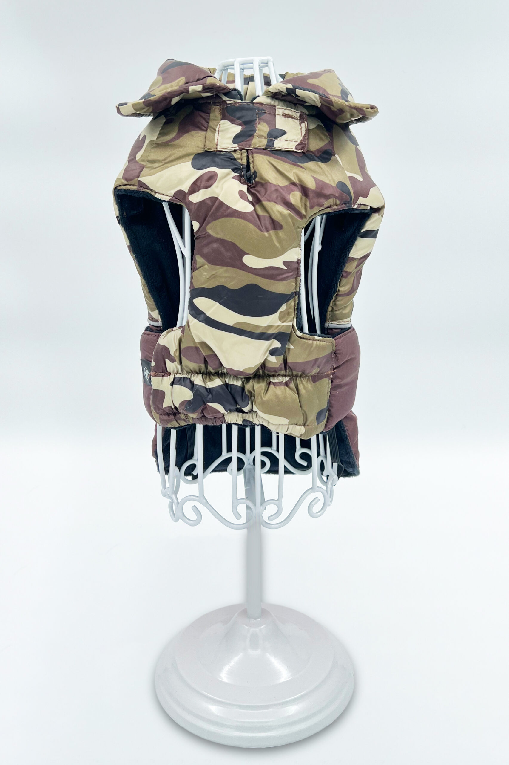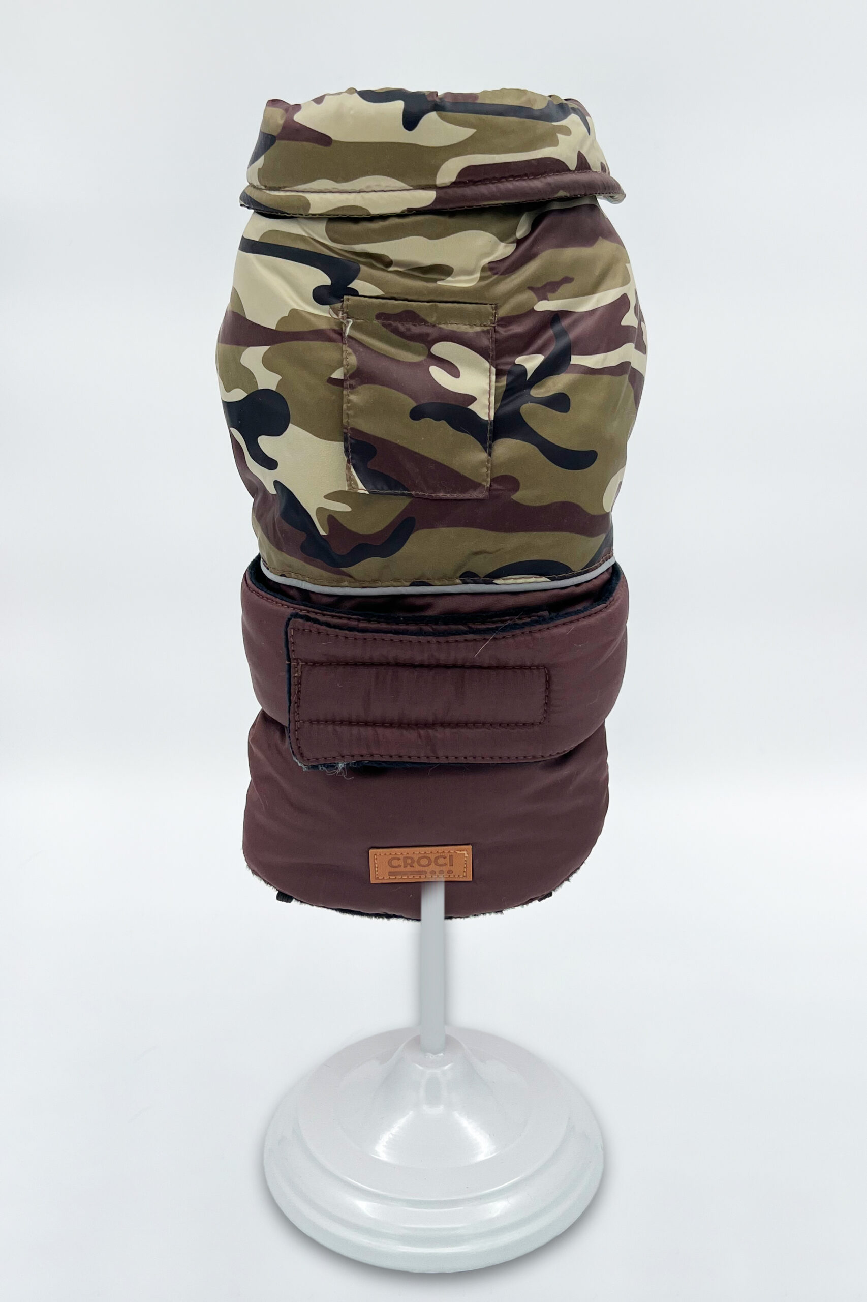 Bois är en vadderad kamouflagejacka för hund gjord av vattentätt tyg och täckt med ett underbart svart sammetsfoder som garanterar skydd mot kyla för ditt husdjur under hela vinterperioden.