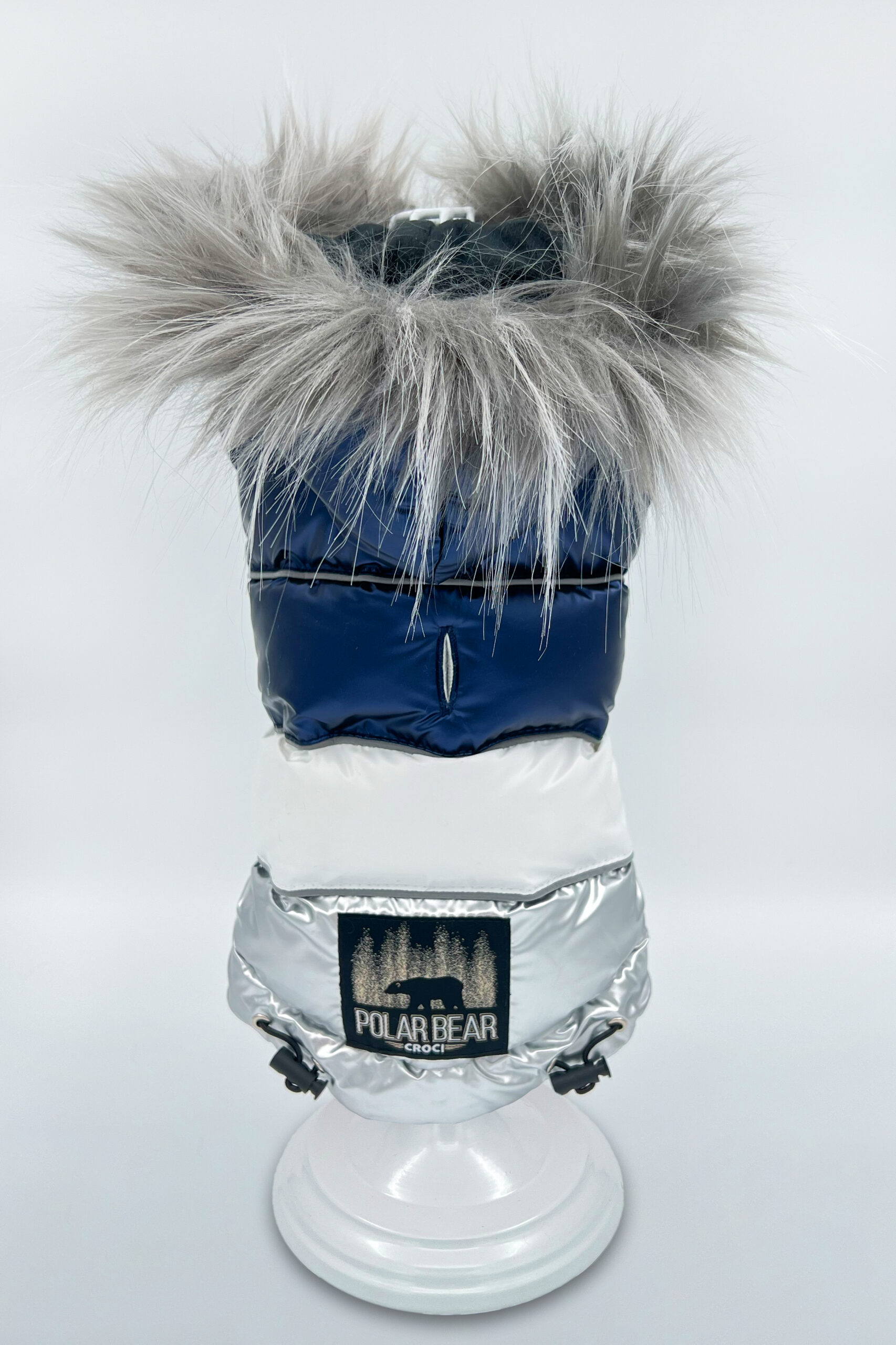 Polar Bear är en hundjacka vadderad med konstgässdun gjord av mjukt tyg med reflekterande detaljer och fodrad insida i sammet.