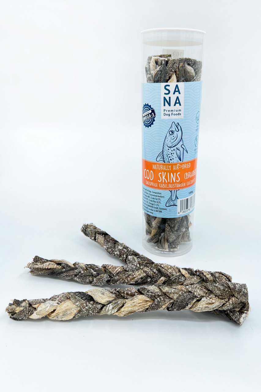 Torskskinn är särskilt rik på essentiella omega-3 och omega-6 fettsyror. De mycket hälsosamma fetterna som din hund inte kan producera själv är viktiga för ämnesomsättningen och har en positiv effekt på din hunds prestation och motståndskraft. Vidare innehåller torskskinn mycket kollagen, vilket är viktigt för ett friskt hjärta, hjärna, hud och päls.